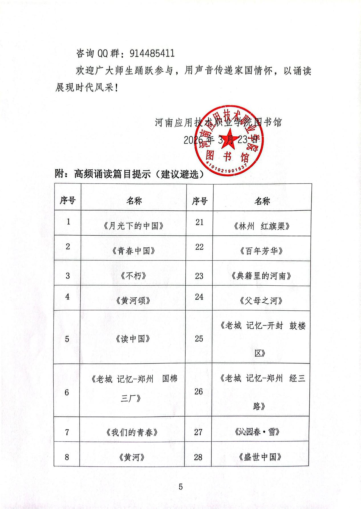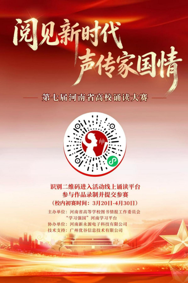 本次活动以第七届河南省高校“阅见新时代·声传家国情”主题诵读大赛为依托,紧扣高校作为文化育人主阵地的功能定位。各二级学院(中心)需广泛动员师生积极参与,精心做好选拔组织工作,共同打造一场“思想深邃、情意真切、品质上乘”的文化盛典。