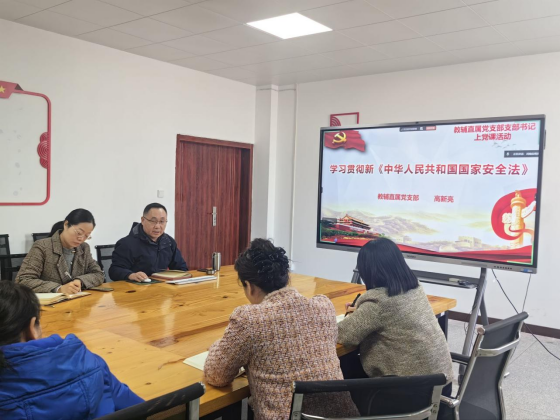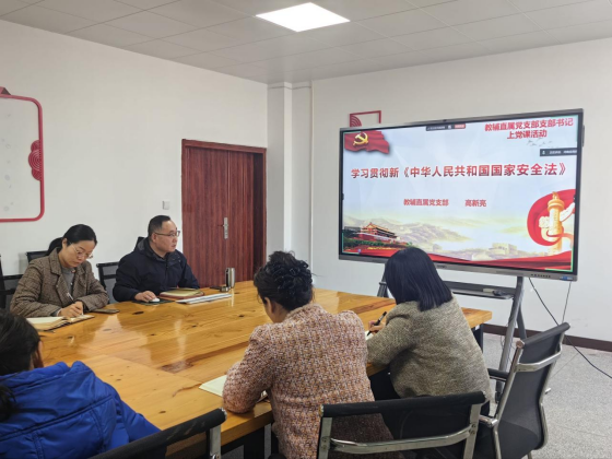 2025年12月4日,教辅直属党支部以“学习贯彻新《中华人民共和国国家安全法》”为主题,在郑州校区与开封校区党员活动室开展了支部书记上党课专题学习活动。党课通过视频连线形式,由支部书记高新亮主讲,图书馆和继续教育学院全体党员干部参加了学习。